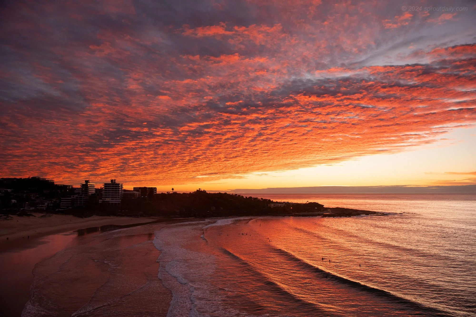 We're on a roll of spectacular sunrises. The long weekend had plenty of colour at sunrises and sunsets and this morning a vast ceiling of high cloud caught fire above Freshwater. Mother nature is giving Vivid Sydney a decent run for its money.